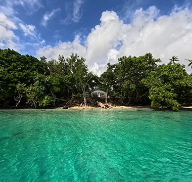 Aore Island sits just across the Segond Channel from Luganville on Espiritu Santo. It’s a tranquil, tropical escape with swaying coconut palms, coral gardens, and warm, clear water — yet it’s only about 5 minutes by boat to Luganville, for markets, cafés, and supplies.